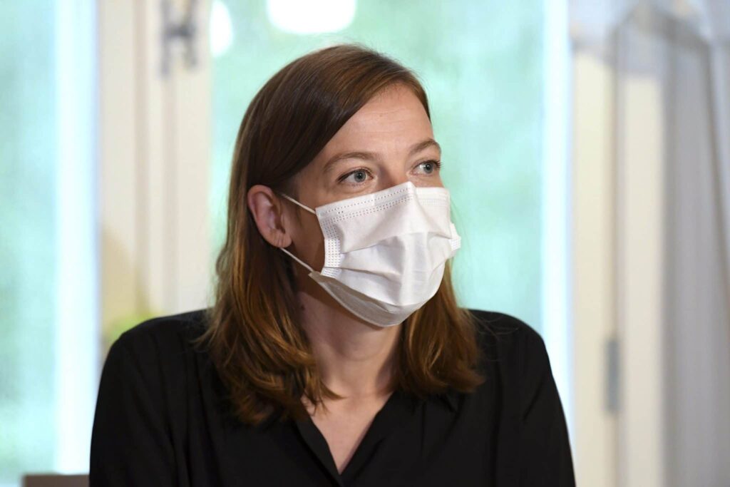 Vasemmistoliiton puheenjohtaja, opetusministeri Li Andersson paheksuu keskustan eduskuntaryhmän puheenjohtajan Juha Pylvään sanankäyttöä.