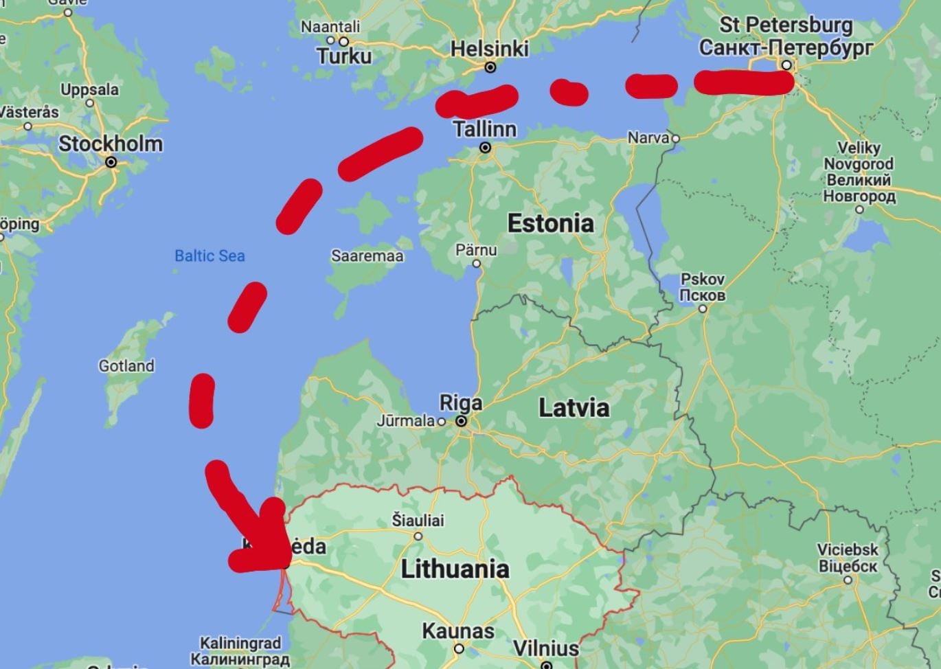 Lithuania will issue tourist visas to all Russians who can swim to our holiday resorts via this sea corridor. #visabanforrussians pic.twitter.com/mHF1XQ8aNM