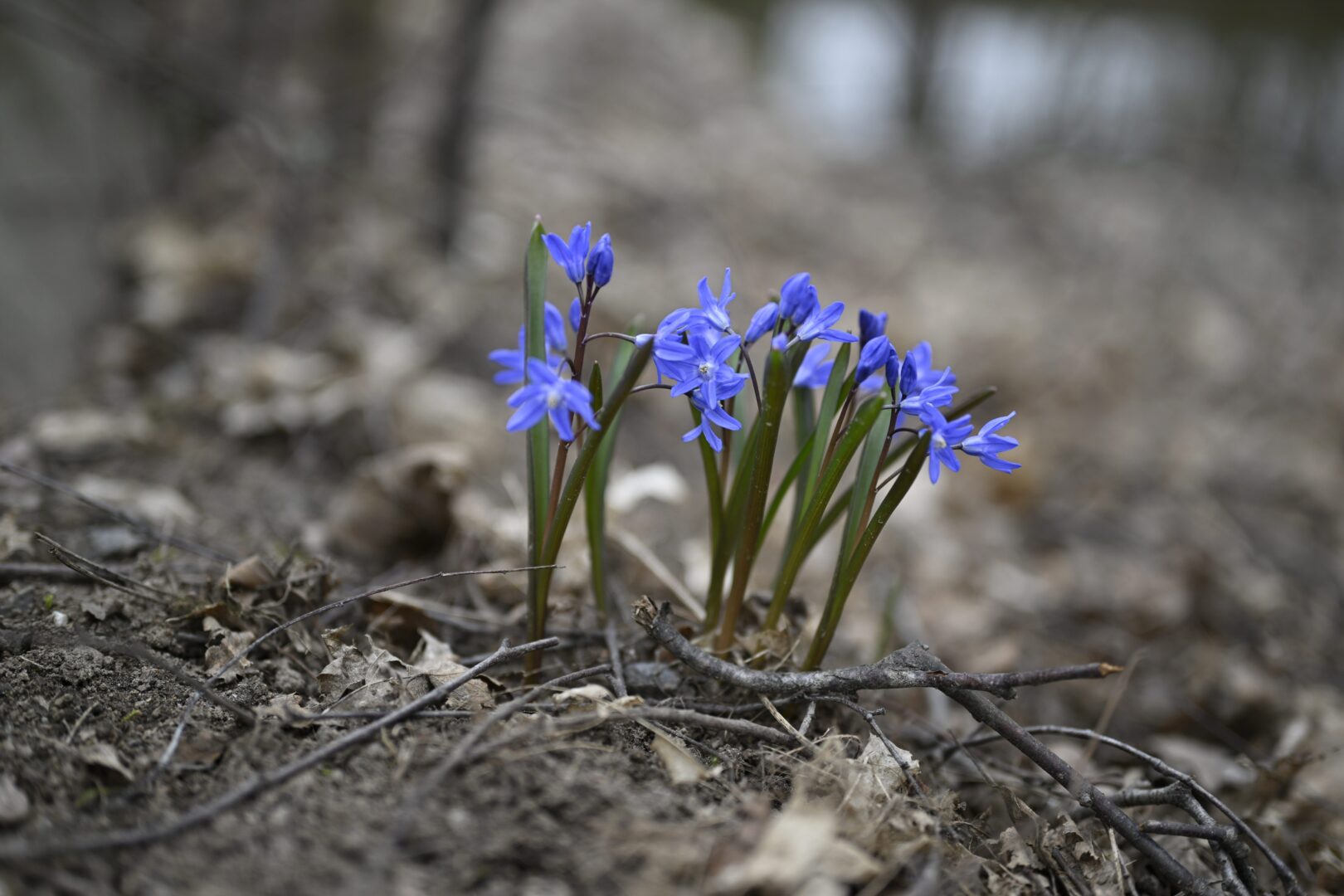 Idänsinililjat kukkivat Helsingissä 30. maaliskuuta 2025. LEHTIKUVA / ANTTI AIMO-KOIVISTO