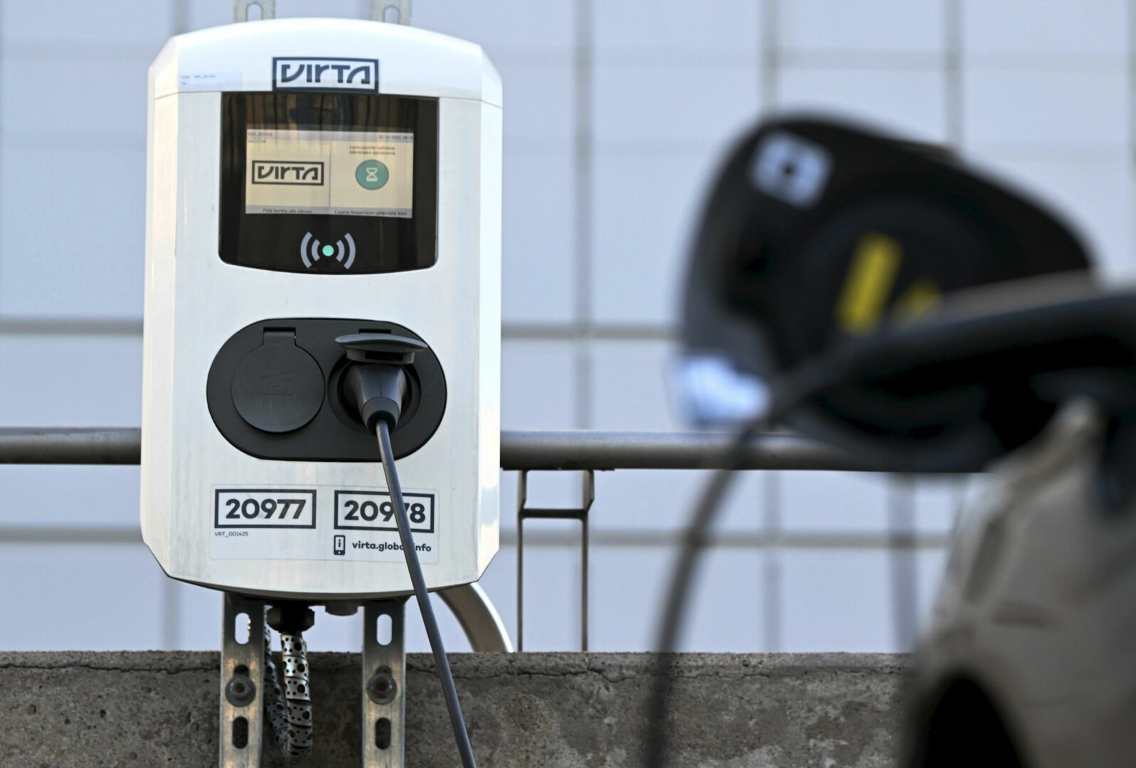 Sähköauton latauspiste Vantaalla. LEHTIKUVA/MARKKU ULANDER