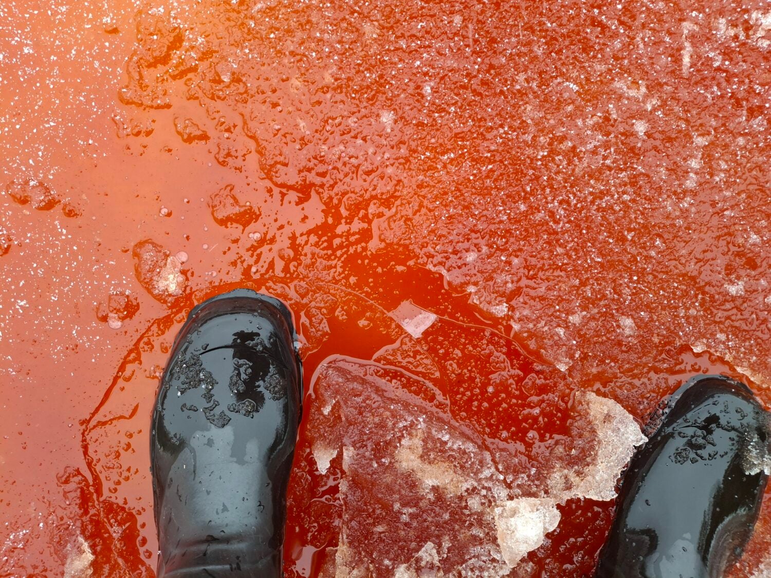 Punaiseksi värjäytynyt jää ja vesi on herättänyt huomiota Suomenlahden rannikolla Helsingin edustalla. Suomen ympäristökeskus kertoo, että punaruskea ja paikoitellen jopa verenpunainen väri johtuu hajoavista rakkohauru-levistä.
