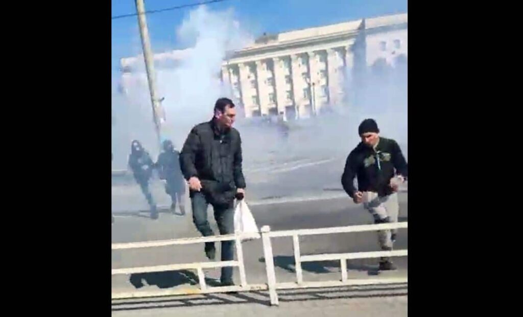 Venäjän sotilaiden kerrotaan hajottaneen väkivalloin rauhanomaisen mielenosoituksen Ukrainan eteläosissa sijaitsevassa Hersonin kaupungissa.