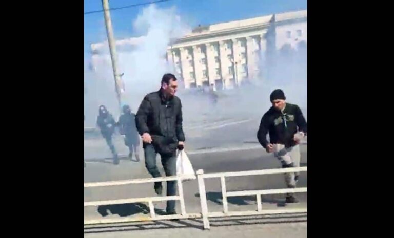 Russian soldiers firing at civilians in #Kherson.