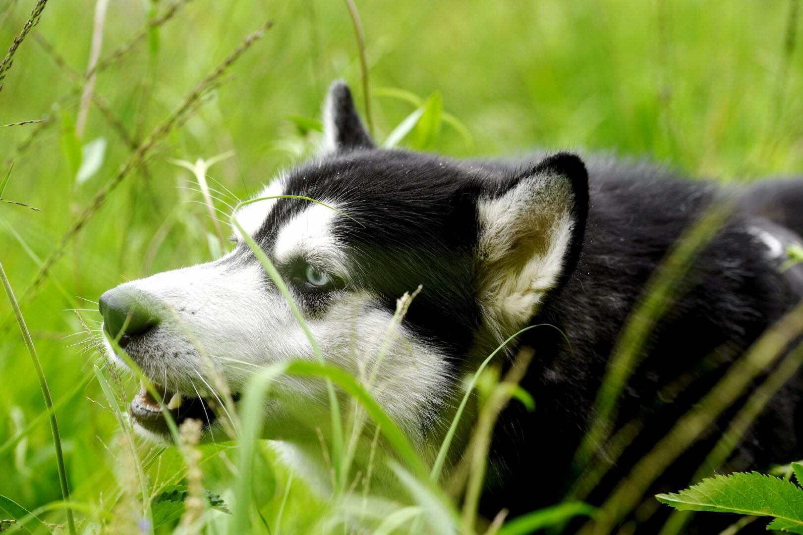 Koira ruohikossa Helsingissä 9. heinäkuuta 2021. LEHTIKUVA / SILJA-RIIKKA SEPPÄLÄ