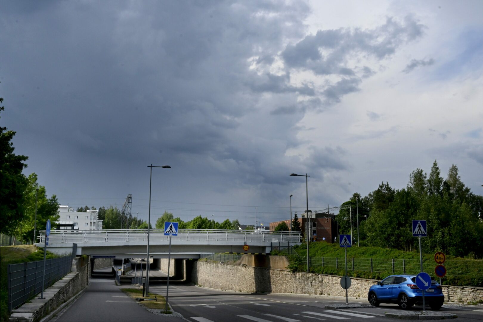 Tummia pilviä Espoon keskuksella 28. kesäkuuta 2023. LEHTIKUVA / HEIKKI SAUKKOMAA