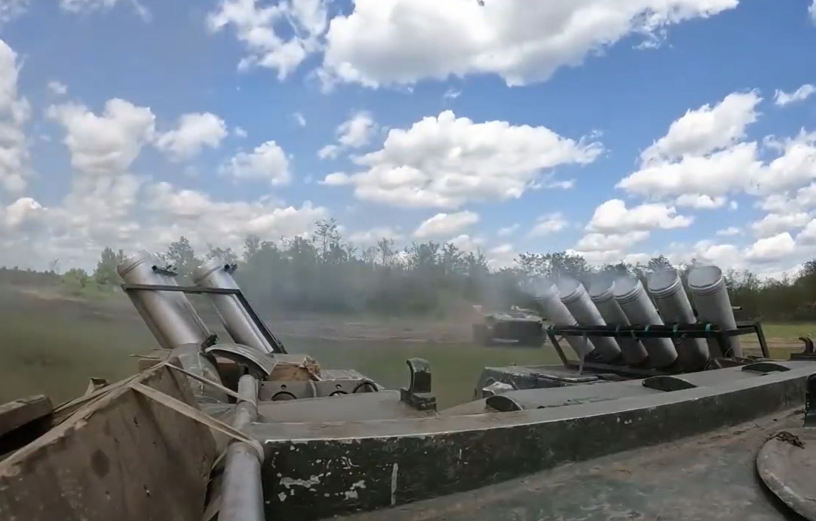 Sotilaat lataavat ajoneuvon takaosassa olevan heittimen ja ajavat kohdealueelle. Panssari- ja jalkaväkimiinoja kylvetään summittaisen oloisesti Ukrainan maaperään.