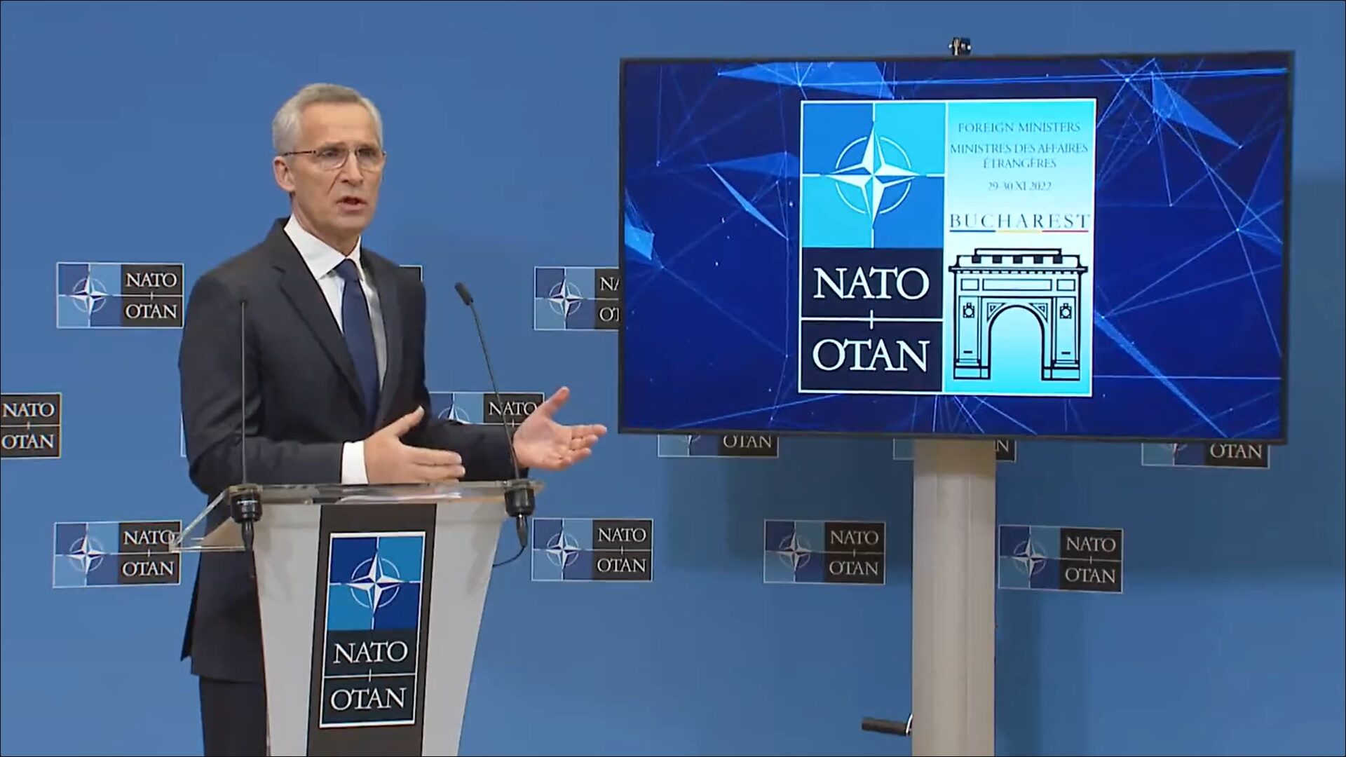 Brysselissä pidetyssä Naton ulkoministerikokouksen ennakkotiedotustilaisuudessa puolustusliiton pääsihteeri Jens Stoltenberg kommentoi Suomen ja Ruotsin Nato-jäsenyyttä. Itse ulkoministerikokous järjestetään Romanian pääkaupungissa Bukarestissa 29.–30. marraskuuta.