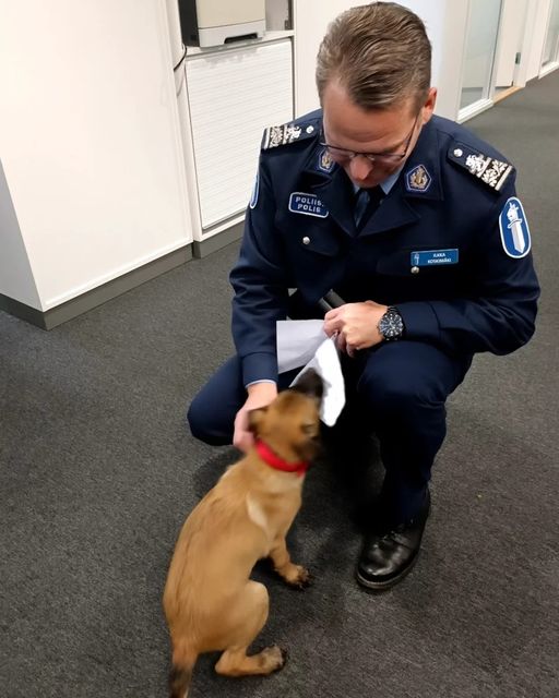 Frodo on belgianpaimenkoira malinois. Kun se kävi tutustumassa työpaikkaansa pienenä, jakoi Itä-uudenmaan poliisi siitä Facebookissa hurmaavan kuvan.