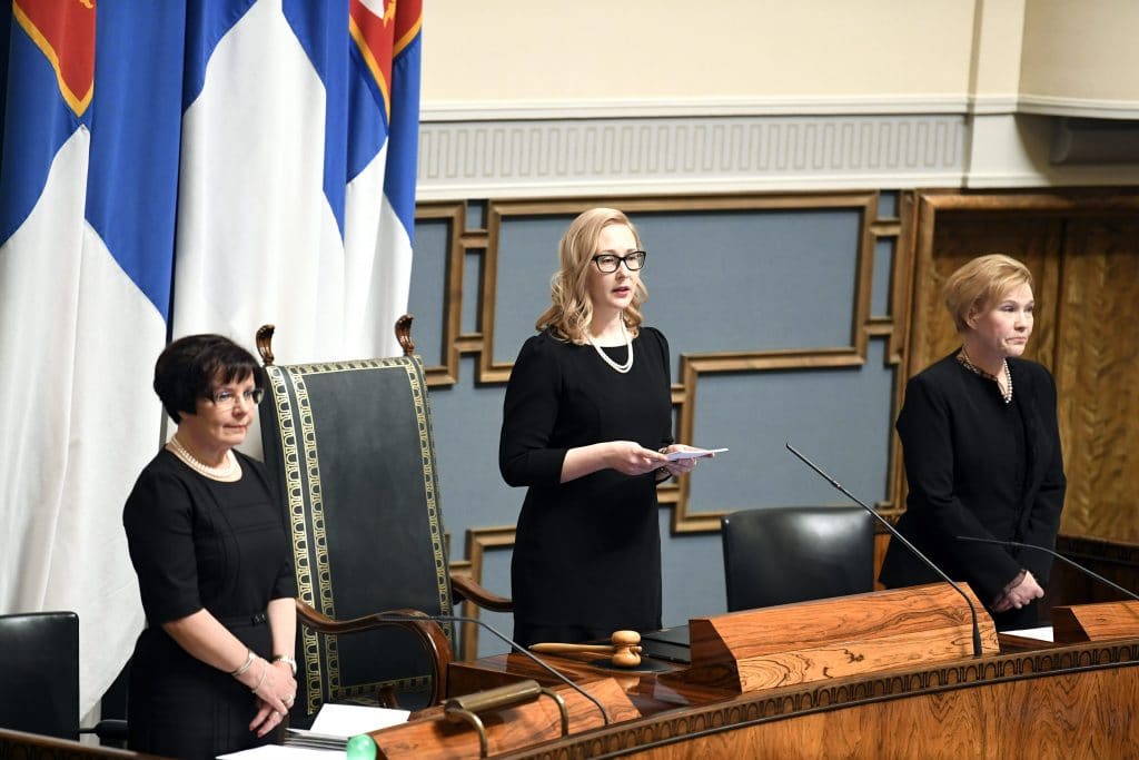 – Lähes päivälleen sata vuotta sitten, torstaina 6.12.1917, eduskunta hyväksyi Suomen itsenäisyysjulistuksen. Itsenäisyys näytti niin epävarmalta, että seuraavan päivän sanomalehdissä tapahtuneesta oli vain pieniä otsikoita ja korkeintaan kahden palstan lyhyitä uutisia, Maria Lohela sanoi itsenäisyyden 100-vuotisjuhlaistunnossa eduskunnassa tiistaina.