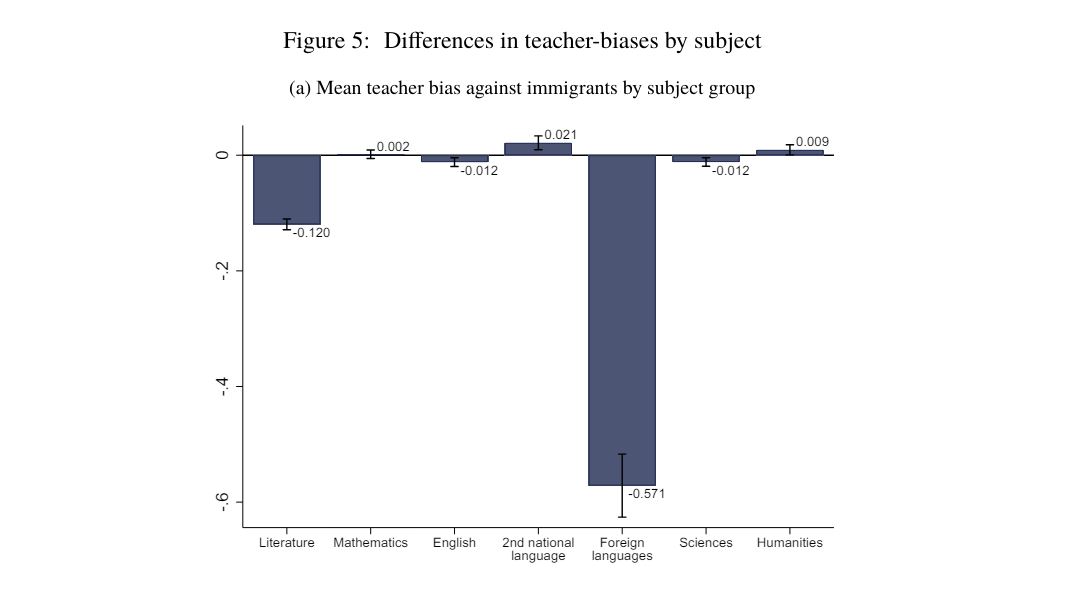 Tutkijat tulkitsivat, että matalampi pistemäärä johtuu opettajan ennakkoluuloista liittyen opiskelijaan ja hänen taustamaahansa. Aineiston ”mediaani-opettajan” ei kuitenkaan todettu kohdistavan maahanmuuttajataustaisiin opiskelijoihin juuri lainkaan syrjintää, vaan kyse oli pienestä joukosta opettajia.
