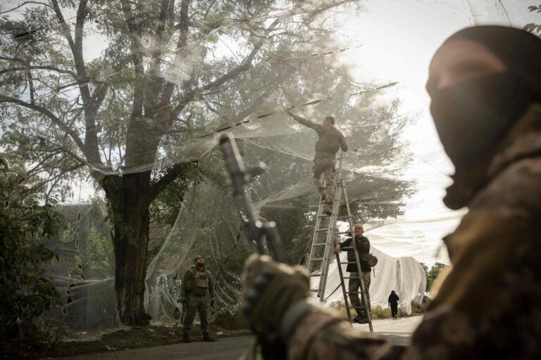 Donetskissa suojattiin tietä drooniverkolla syyskuussa. AFP / LEHTIKUVA / OLEG PETRASIUK