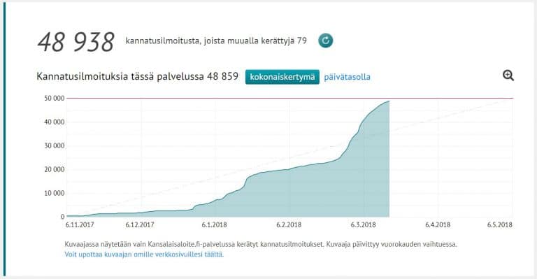 Perintö- ja lahjaverosta luopumista ajava kansalaisaloite on saamassa kasaan vaadittavat 50 000 allekirjoitusta. Allekirjoituksia aloitteelle on kertynyt tätä kirjoitettaessa lähes 49 000 ja keräysaikaa on jäljellä vielä yli 1,5 kuukautta.