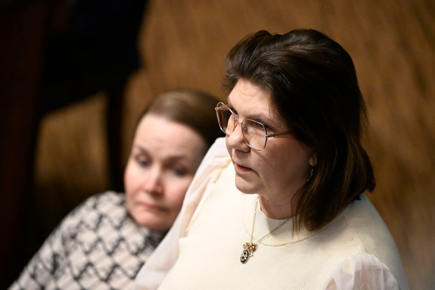 Perussuomalaisten kansanedustaja Mira Nieminen (ps.) eduskunnan täysistunnossa Helsingissä 4. maaliskuuta 2026., LEHTIKUVA / EMMI KORHONEN