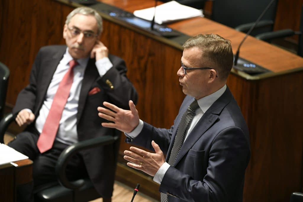 Petteri Orpo kysyi pääministeriltä ”miten tämä on mahdollista, että näihin ei saada selkeitä vastauksia? Voisimmeko nyt tässä eduskunnan edessä saada näihin yksinkertaisiin kysymyksiin selkeät vastaukset”.