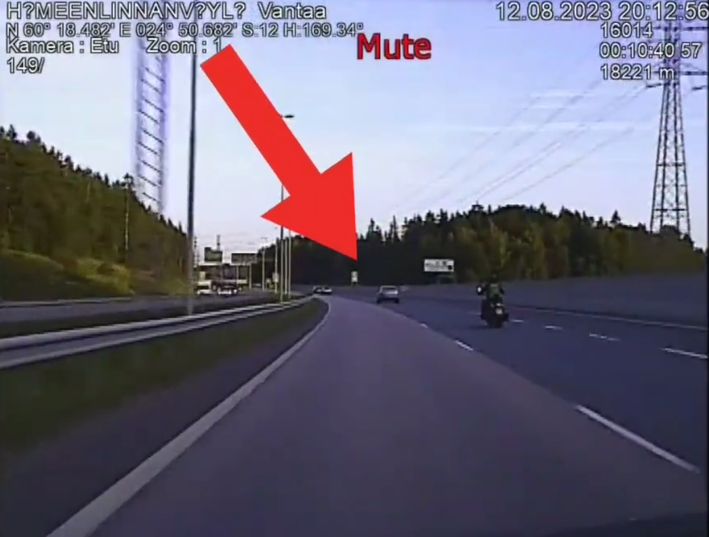 Videolla on nähtävissä, kuinka nuori kuljettaja ajaa törkeää ylinopeutta Hämeenlinnanväylällä Vantaalla. Video päättyy siihen, kun ylinopeuden mitannut poliisipartio lähtee ajamaan kuljettajan perään.