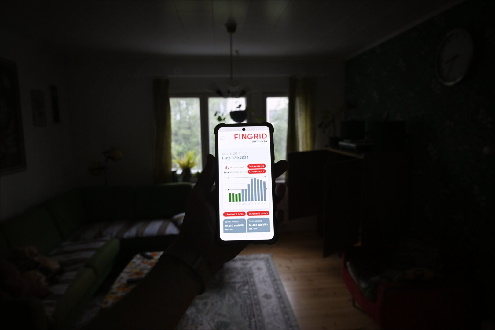 Kalleimpien tuntien jälkeen sähkö maksaa kello 21 alkaen 18,8 senttiä, kello 22 alkaen 14,3 senttiä ja kello 23 alkaen 12,7 senttiä kilowattitunnilta.