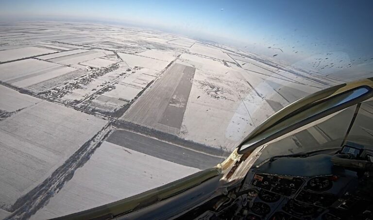 Ukrainan MiG-29-hävittäjän pilotti kuvaa toista konetta ohjaamostaan. @KpsZSU/www.twittecom