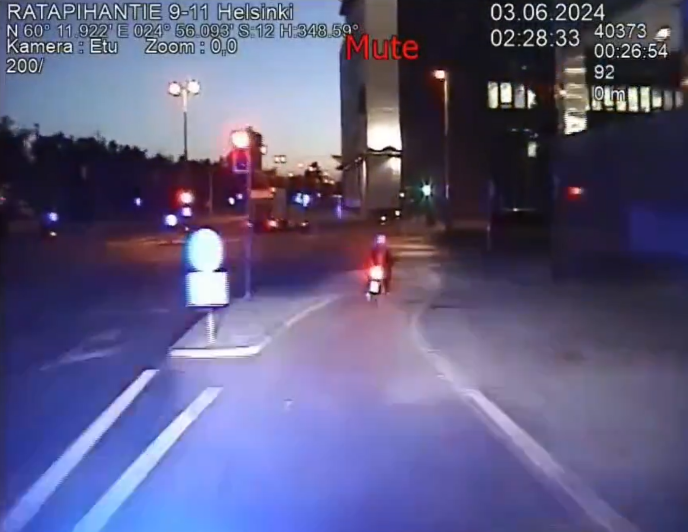 Tallenteella on nähtävillä, kuinka poliisi ryhtyy seuraamaan skootterilla ajavaa kuljettajaa. Poliisin mukaan kuljettaja ei pysähtynyt poliisin pysäytysmerkkiin, vaan lähti ajamaan kovaa vauhtia poliisia pakoon.