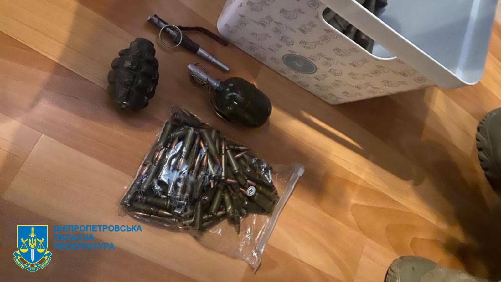 Ukrainan tiedustelupalvelu pidätti miehen kotoaan. Sieltä löytyi kahdenmallisia kranaatteja, karbiini-ase sekä suuri määrä patruunoja ja savupommeja.