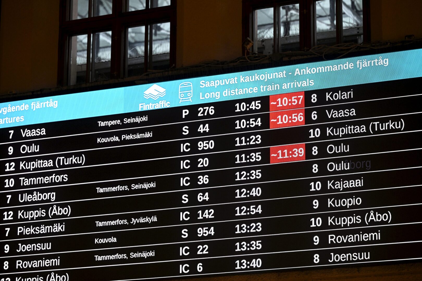 Juna-asemien laituri- ja informaationäytöissä on vikaa koko rataverkolla, tiedottaa Fintraffic Rataliikennekeskus.