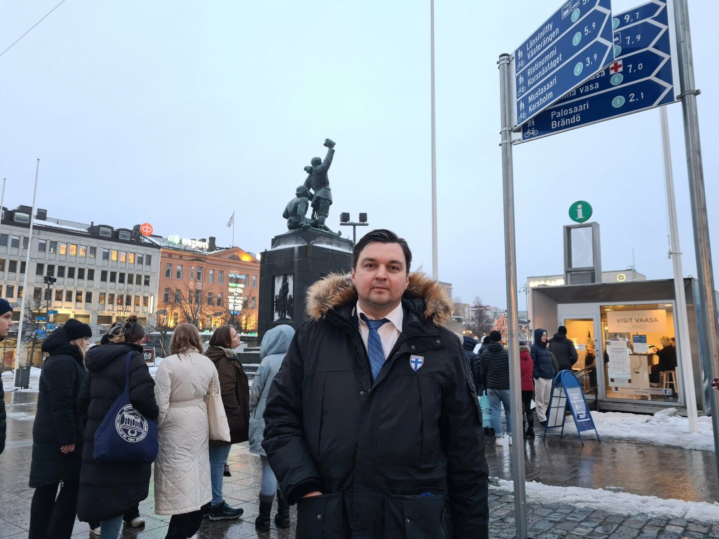 – Vaasan & Suomen Vapaudenpatsaan kupeessa, numero on 8 👍, hän jatkaa.
