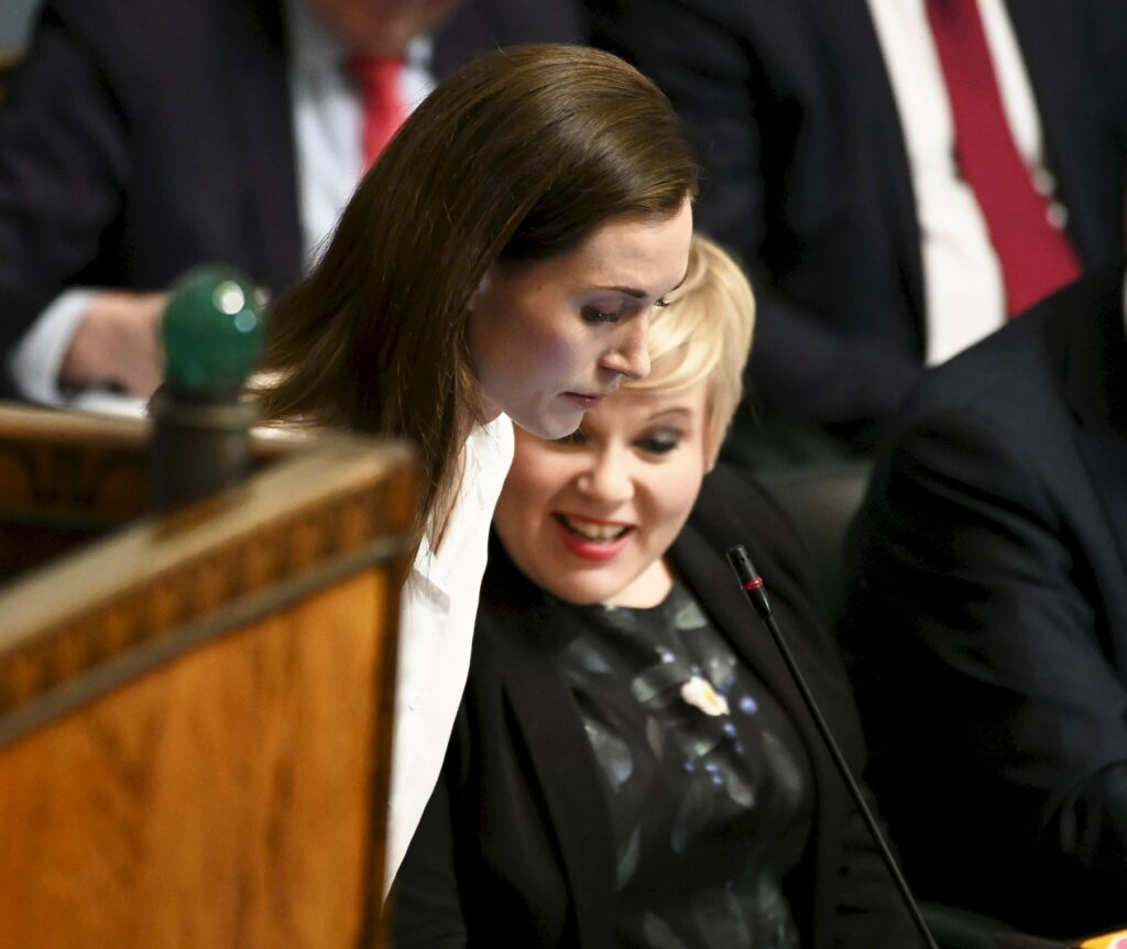 Pääministeri Sanna Marin ja valtiovarainministeri Annika Saarikko. LEHTIKUVA / VESA MOILANEN