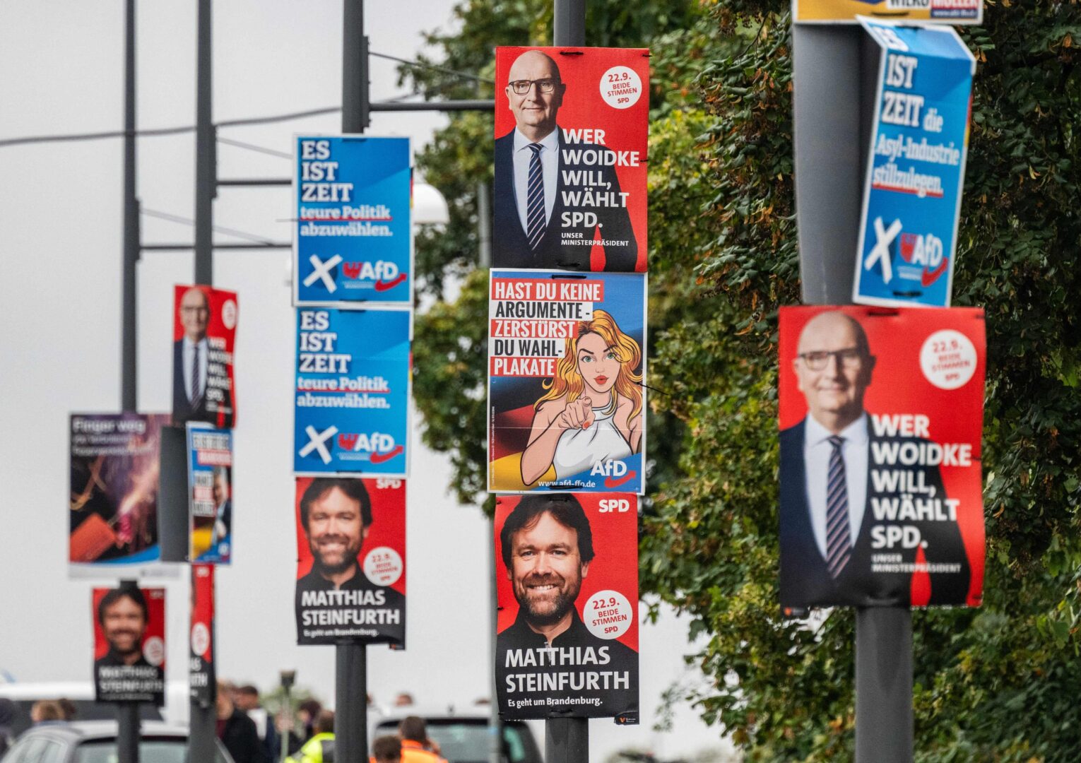 Tageschaun mukaan 75 prosenttia brandenburgilaisista sosiaalidemokraateista ei ole vakuuttunut puolueen kannoista, mutta äänestää sitä torjuakseen AfD:n valtaannousun. Scholzia hyvänä kanslerina pitää vain 20 prosenttia vastaajista.