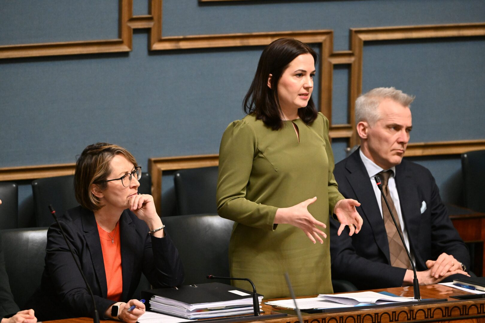 Sosiaaliturvaministeri Sanni Grahn-Laasonen (kok.) vastasi eduskunnan kyselytunnilla Li Anderssonin (vas.) kysymykseen hyvinvointialueiden rahoituksesta.