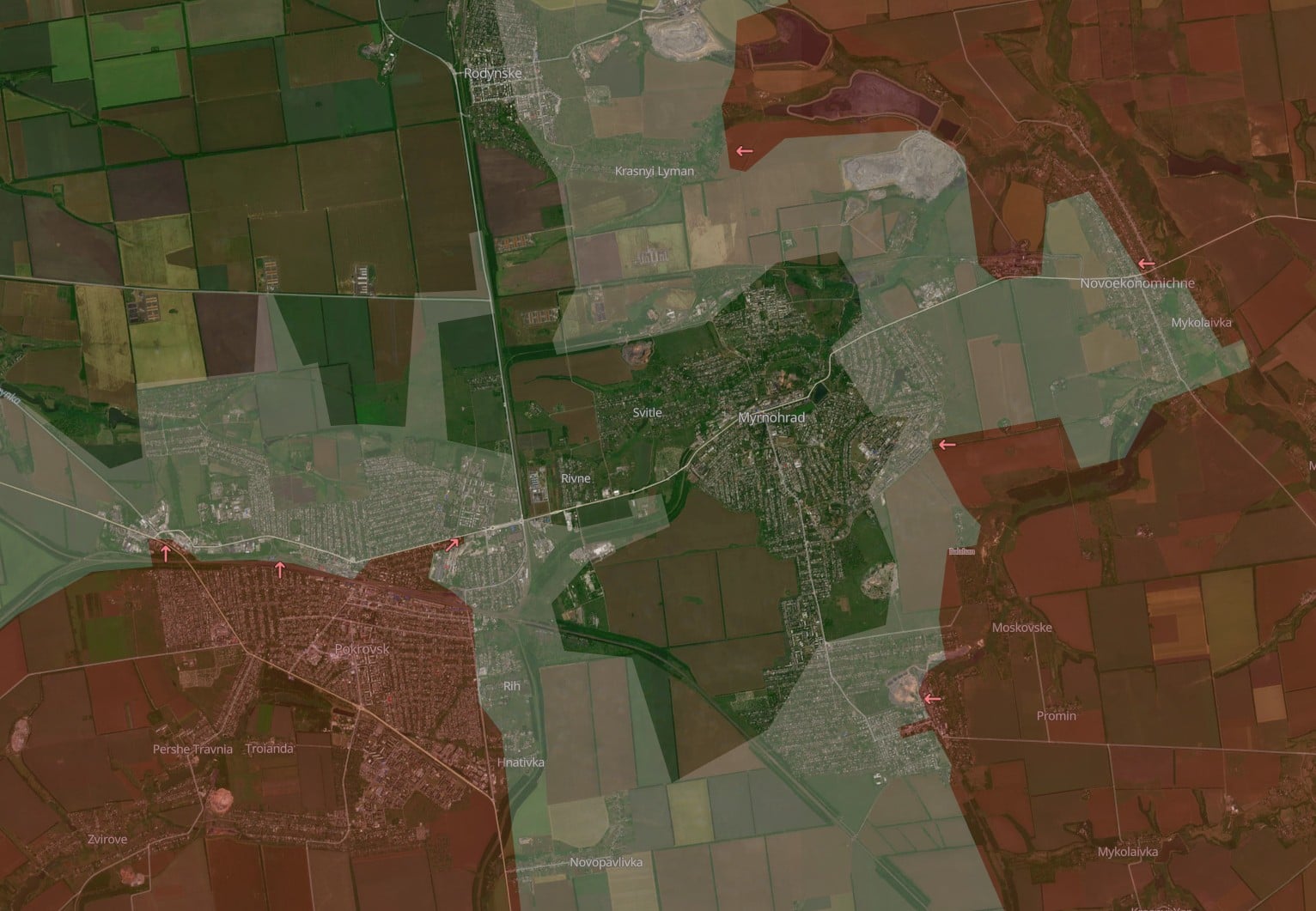 Ukrainan joukot ovat kuitenkin edelleen asemissa Pokrovskin pohjois- ja itäosissa. Asiantuntijat ovat jo pidemmän aikaa varoittaneet noin viiden kilometrin päässä sijaitsevan Myrhohradin tilanteesta ja mahdollisesta saarrostuksesta, sillä huoltoteitä on erittäin vaikea pitää auki jatkuvien drooni- ja tykistöiskujen vuoksi. Ukrainan kerrottiin vetäytyneen aiemmin kaupungin eteläosista.