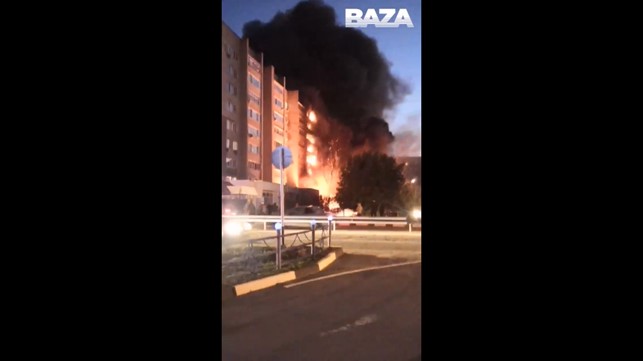 Five floors in this residential building in Yeysk are reportedly on fire after a Su-34 crashed into it soon after takeoff from a nearby military base. The MoD confirmed saying it was “a training flight” (with full ammo?) pic.twitter.com/IkKztVEHcG
