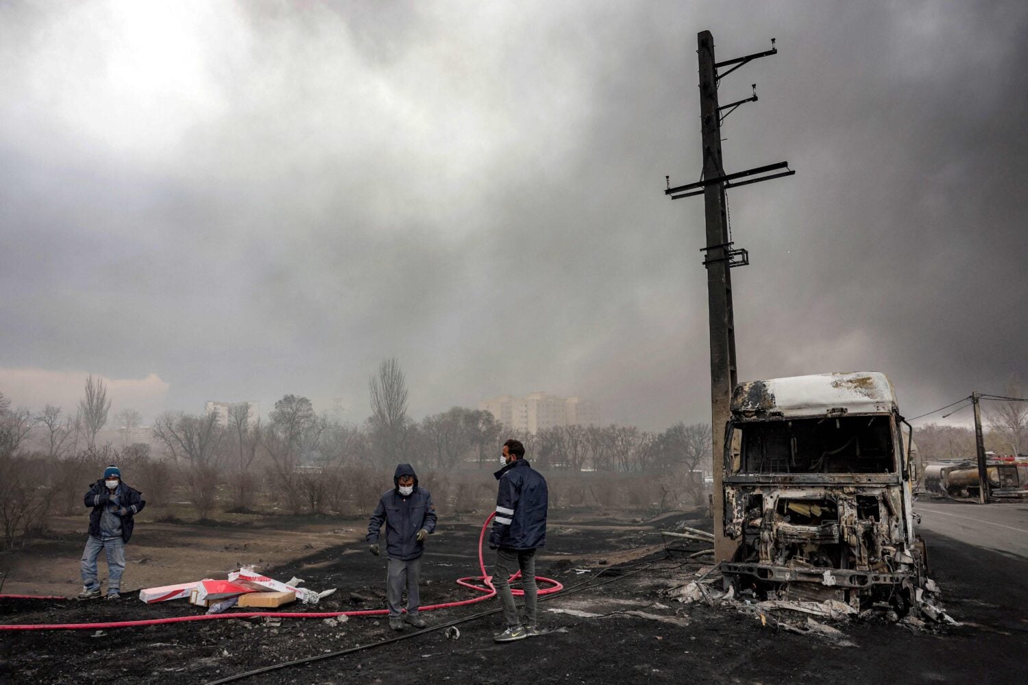 Viestipalvelu X:ssä julkaistuissa kuvissa taivas Teheranin yllä oli aamuyhdeksältä paikallista aikaa synkkä. Paikallisten kerrotaan olevan huolissaan viimeöisistä räjähdyksistä sekä öljyvarastopaloista ilmaan vapautuvista kemikaaleista.