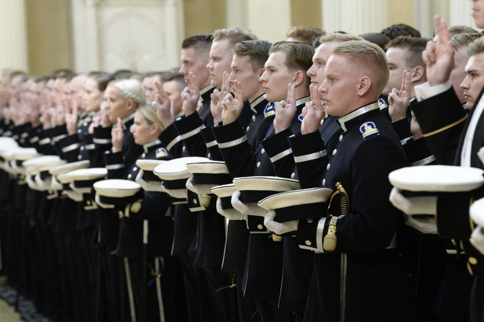 Tuoreita luutnantteja ovat onnittelemassa tasavallan presidentin rinnalla puolustusministeri Antti Häkkänen sekä Puolustusvoimain komentaja, kenraali Janne Jaakkola. Merkittävää hetkeä sotilasuran alkutaipaleella ovat seuraamassa myös valmistuvien omaiset.