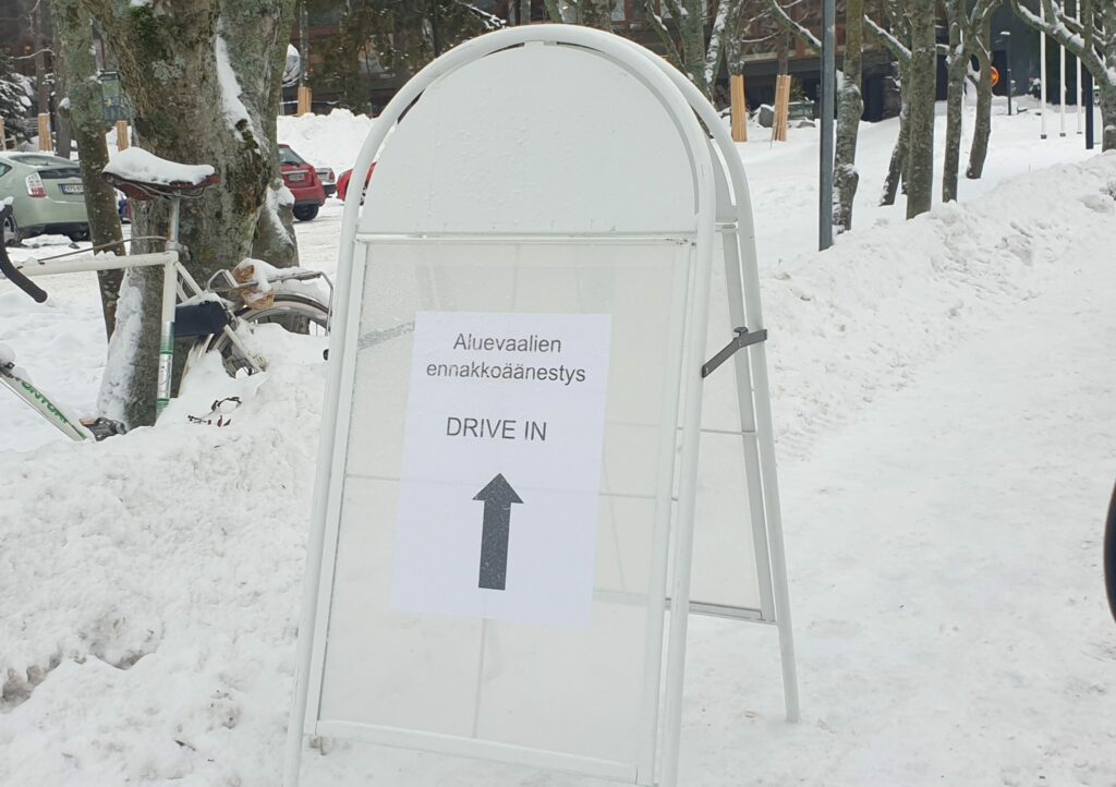 Kun Verkkouutiset kuntavaaleissa toukokuussa 2021 kävi äänestämässä autosta, jonotti sadesäässä 15-20 autoa. Lievää sekaannusta piisasi.