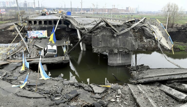 Tuhoutunut maantiesilta Kiovan lähellä sodan alkuvaiheiden aikana. LEHTIKUVA / JUSSI NUKARI