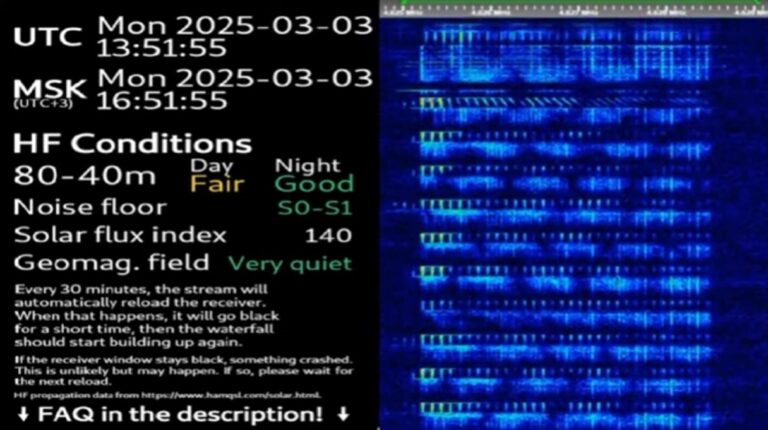 Lyhytaaltoasema, joka välittää ajoittain salattuja numeroista, sanoista ja sanoja muistuttavista kirjainyhdistelmistä koostuvia viestejä, lähetti helmikuussa 2025 yhteensä 46 sanomaa. Ennätysmäärä, 25 sanomaa yhdessä päivässä, osui samaan päivään 12. helmikuuta 2025, jolloin Trump ja Putin kävivät ensimmäisen puhelinkeskustelunsa Trumpin presidenttikauden alettua. Koodisanoja olivat muun muassa ”synopsis”, ”narta”, ”bulevardi”, ”spiidokraatti”, ”kitisevä” ja ”Brahmaputra”.