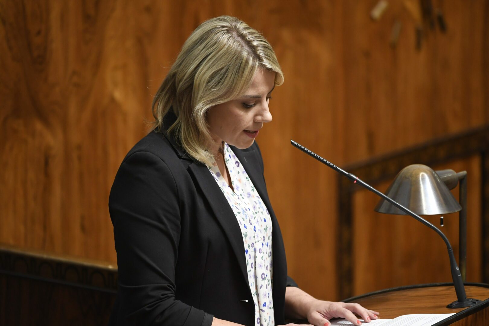 Kokoomuksen kansanedustaja ja työelämä- ja tasa-arvovaliokunnan puheenjohtaja Saara-Sofia Sirén painottaa hallituksen työmarkkinauudistusten välttämättömyyttä Suomelle kokoomuksen eduskuntaryhmän ryhmäpuheenvuorossa eduskunnan keskustellessa välikysymyksestä työmarkkinatilanteessa.