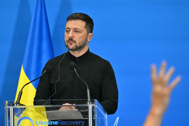 Ukrainan presidentti Volodymyr Zelenskyi lehdistötilaisuudessa Roomassa 10.7.2025. AFP / LEHTIKUVA / ANDREAS SOLARO
