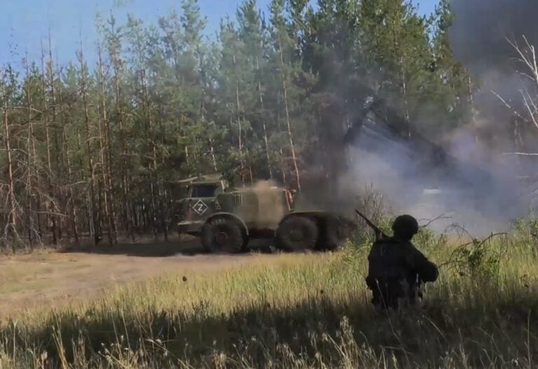Venäjän BM-27 Uragan -raketinheitin Ukrainan rintamalla. / Zvezda