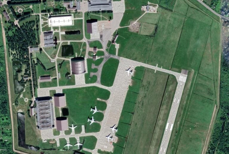 Radio Free Europen hankkimat satelliittikuvat näyttävät kolme reikää keskellä 123. lentokonevarikon erään lentokonehallin katossa. Avoimien lähteiden perusteella ei ole tietoa, oliko hallin sisällä lentokoneita osumahetkellä.
