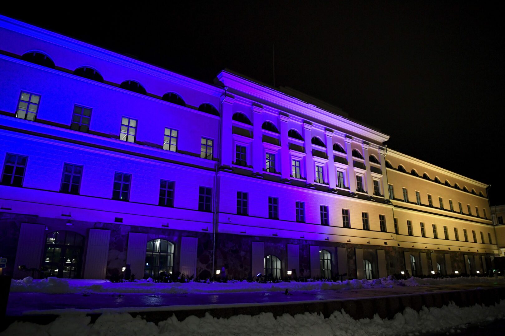 Senaatintorilla Valtioneuvoston linnan edessä sekä ulkoministeriön Martti Ahtisaaren aukion lippurivistöissä nostetaan salkoon Ukrainan liput. Myös muissa valtioneuvoston rakennuksissa liputetaan Suomen ja Ukrainan lipuilla. Ulkoministeriön päärakennuksen julkisivu valaistaan Ukrainan kansallisvärein torstai-illasta lauantaiaamuun.