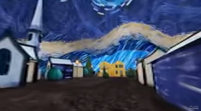 Videolla katsoja pääsee muun muassa kävelemään maalauksen kylän kaduille ja astumaan rakennuksiin sisälle.