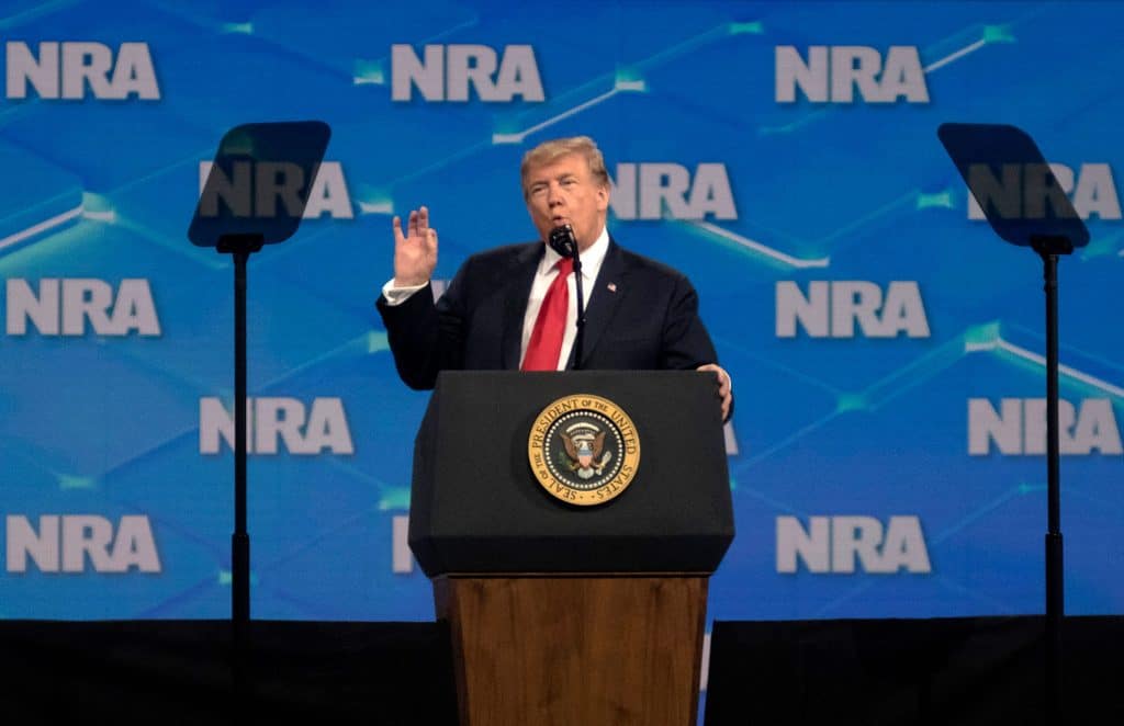 Trumpin mukaan Yhdysvallat ”ei enää koskaan anna ulkomaisten byrokraattien talloa maan perustuslain toista lisäystä”. Toisen lisäyksen on tulkittu suojelevan myös aseiden omistajien oikeuksia ja varsinkin NRA pyrkii voimakkaasti tulkitsemaan pykälää niin, ettei se salli minkäänlaista oikeutta puuttua vapaaseen aseenkanto-oikeuteen.