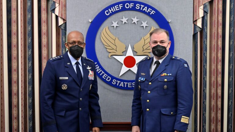 Suomen ilmavoimien komentaja Pasi Jokinen ja Yhdysvaltain ilmavoimien esikuntapäällikkö Charles Q. Brown Jr. tapasivat tiistaina Washingtonissa Pentagonissa.
