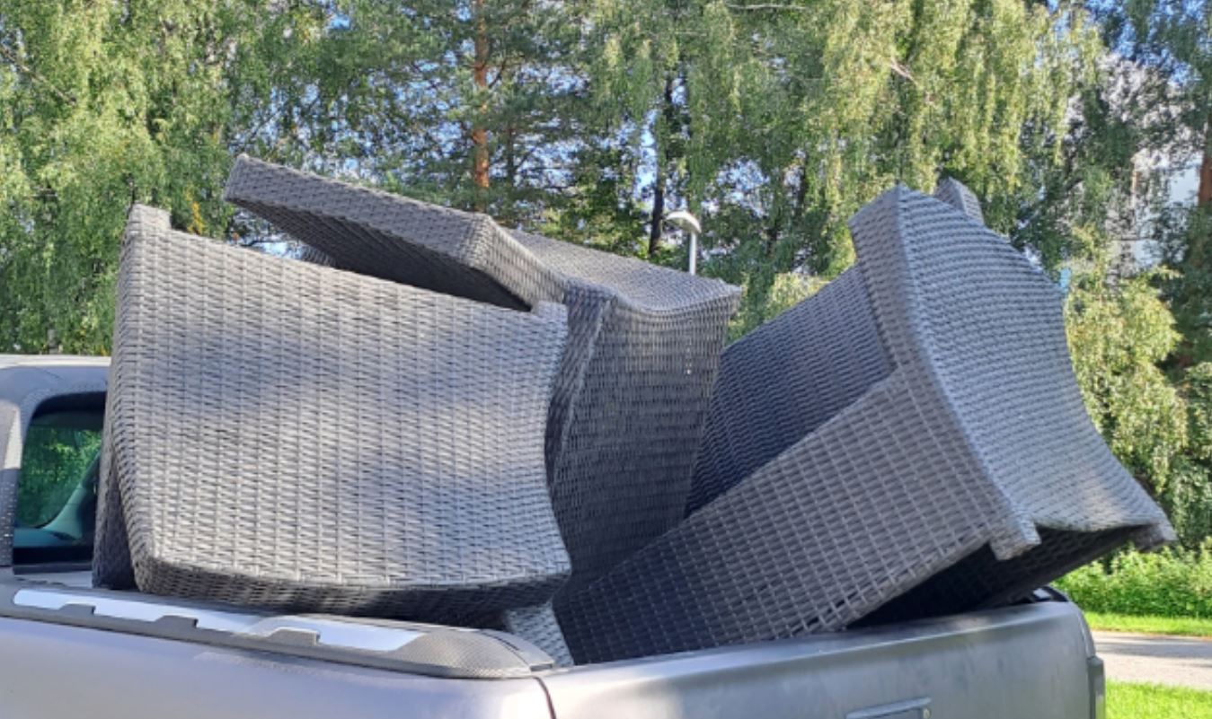 Hän on jakanut X-viestialustalla kuvan avolava-autosta, johon on lastattu kukkuraksi asti pihakalusteita, mutta niitä ei ole sidottu kiinni millään tavalla.