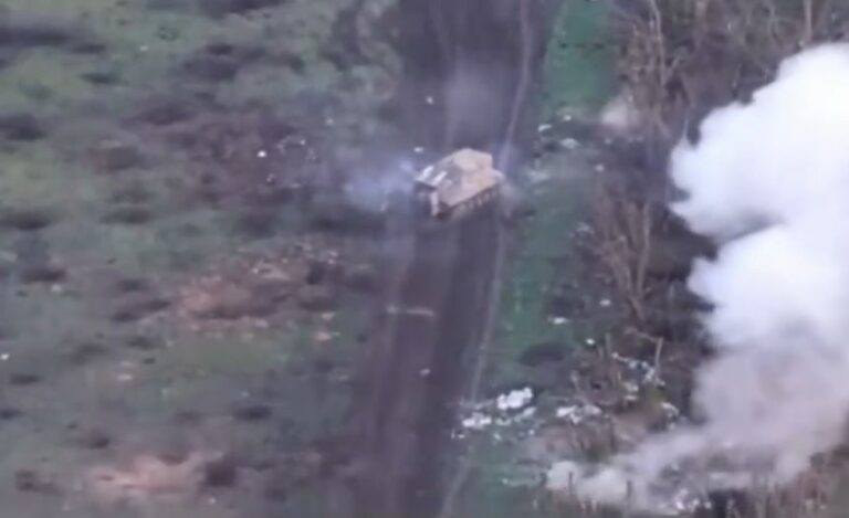 Novomihailivkaan Venäjän miehittämään Itä-Ukrainaan etulinjan lähellä paikallistettu video on sivuston mukaan peräisin Ukrainan asevoimilta, jotka tarkkailivat tilannetta lennokilla.