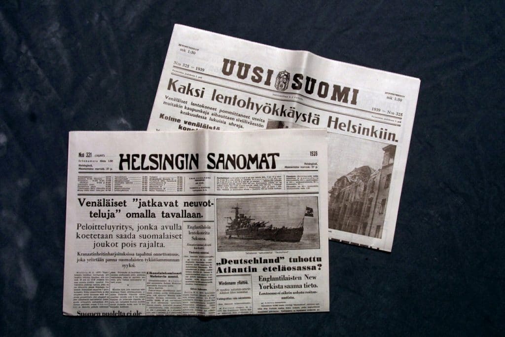 Jyrki Vesikansan US-historiikki alkaa talvisodan kynnyksellä, kirjan kansikuvana on lehden etusivu joulukuun 1. päivältä 1939, jolloin se uutisoi: ”Kaksi lentohyökkäystä Helsinkiin”, ”Maa julistettu sotatilaan” ja ”Joukkojemme mieliala rohkea ja innostunut”.
