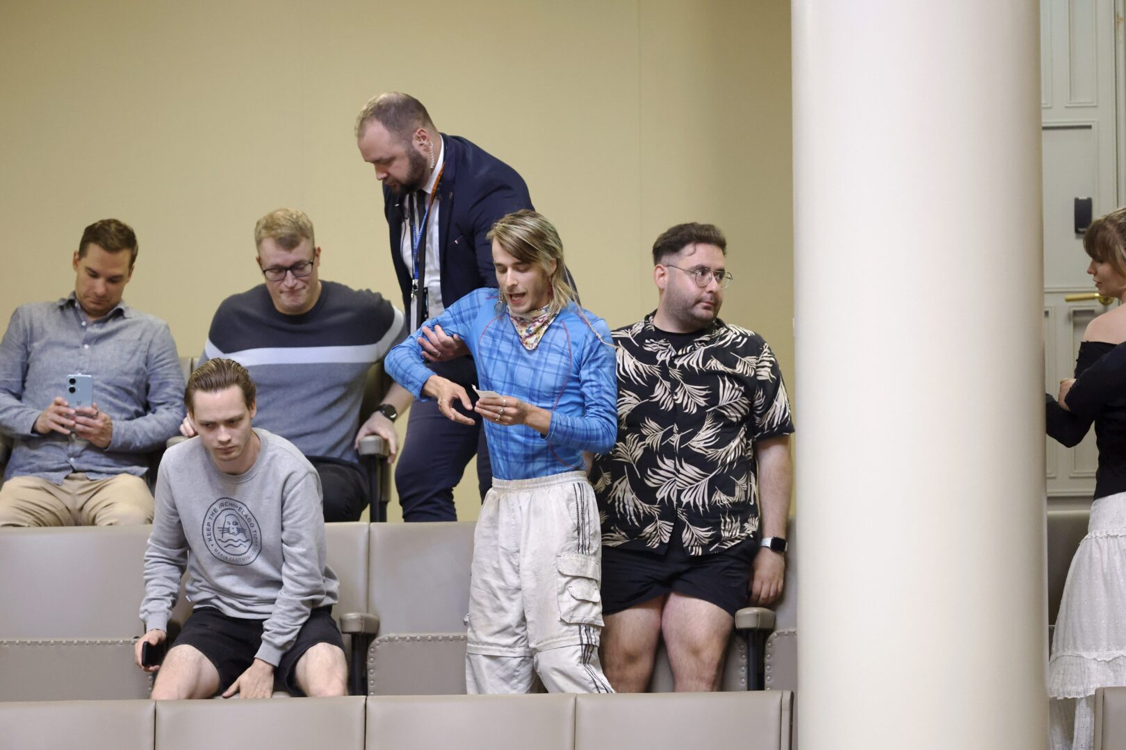 Käännytyslakikeskustelun aikana joukko mielenosoittajia huusi iskulauseita lehterillä. Eduskunnan henkilökunta poisti mielenosoittajat nopeasti.