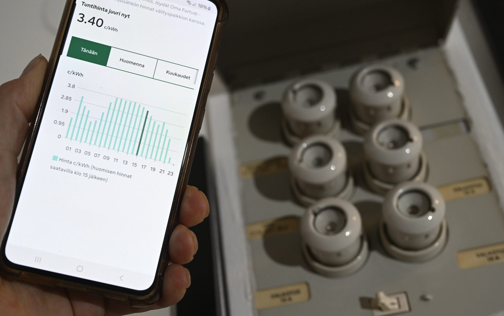 Esimerkiksi torstaina pörssihinta kipusi korkeimmillaan lähes 50 senttiin kilowattitunnilta, kun neljän viikon keskihinta on vain 1,78 senttiä. Hinnoissa ei ole mukana arvonlisäveroa.