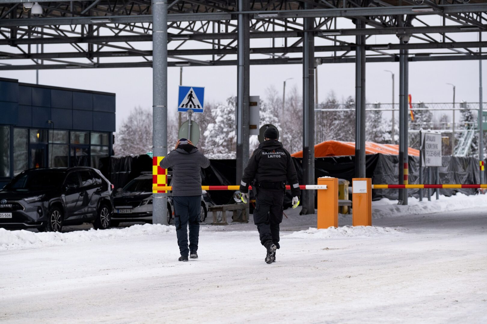 Rajavartija saattoi turvapaikanhakijaa Niiralassa joulukuussa. LEHTIKUVA / MINNA RAITAVUO