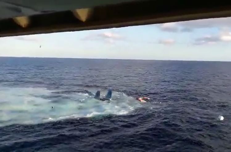 Suhoi Su-33 hävittäjä syöksyi mereen laskeutumisen jälkeen, kun lentotukialuksen kannen pysäytyskaapeli petti. Videolla näkyy mereen uppoava hävittäjä ja pelastushelikopteri nostamassa koneen pilottia merestä. Asiasta tässä uutisoivan War Zonen mukaan lentäjä näyttää sotkeutuneen laskuvarjonsa naruihin.